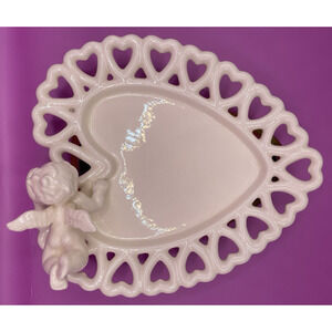 Vintage Handmade Signed Cherub Heart-Shaped Decorative Ceramic Dishes- Set of 2