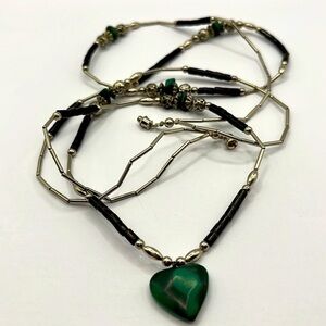 Vintage Handmade Silver Tone Necklace. Faux Malachite beads with Silver beads.