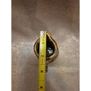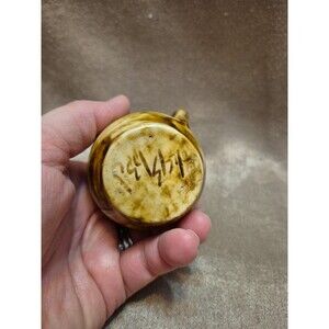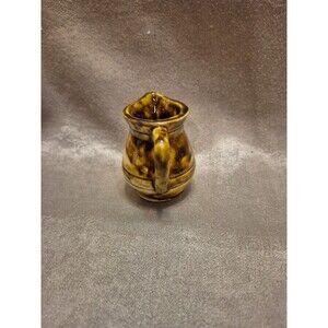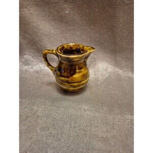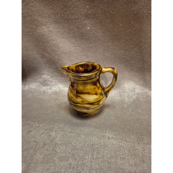 This vintage handmade small pottery creamer is a unique addition to any collection. The brown/tan swirl glazed and signed pitcher has a height of 3 inches and is made of stoneware. The production technique is pottery and the item is vintage. The multicolor pitcher is perfect for decorative use and is sure to catch the eye of any pottery enthusiast.