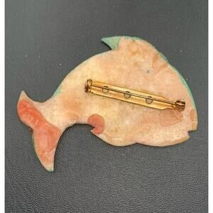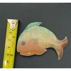 This Vintage Handmade (possibly paper mache)Sparkly Lightweight Fish Brooch features a unique and whimsical design of a fish, perfect for those who appreciate sea life and beauty. The multicolor sparkle adds a touch of elegance to any outfit, making it a versatile and eye-catching accessory. Crafted with care, this vintage brooch is sure to be a statement piece in any jewelry collection.