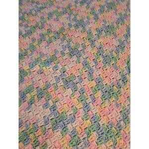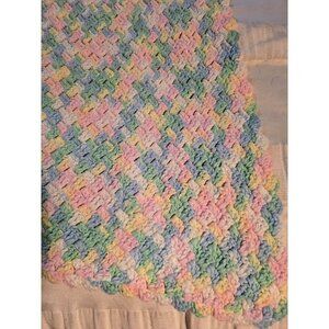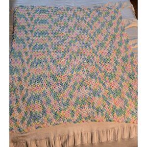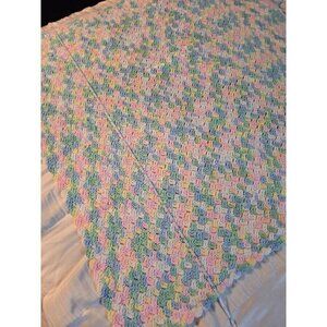 Vintage Handmade Spring Pastel Pink Blue Crochet Throw Blanket