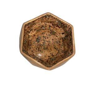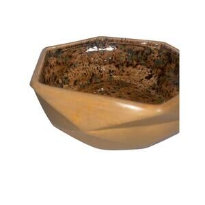This vintage handmade studio art pottery glazed bowl is a unique and decorative piece of American craftsmanship. The round brown bowl features a speckled inside, adding a touch of charm to any occasion. Made of clay with a glossy finish, this bowl is a one-of-a-kind item that would make a great addition to any home decor. Hand-painted and handmade, this vintage bowl is a beautiful example of art pottery production in the 21st century.