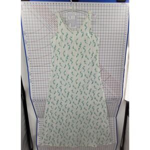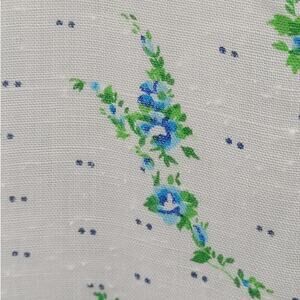A one-of-a-kind cottagecore treasure, this handmade shift dress features delicate Swiss dot fabric patterned with soft blue florals. Its airy sleeveless design, feminine scoop neckline, and simple silhouette create a look that’s both timeless and effortlessly romantic. Perfect for summer picnics, garden parties, or layering with cozy knits in cooler seasons. A true vintage find for collectors and lovers of whimsical style. with a seam allowance ready to alter.
