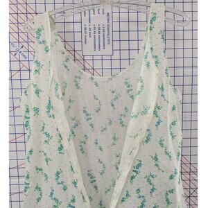 Vintage Handmade Swiss Dot Blue Floral Sleeveless Cottagecore Shift Dress