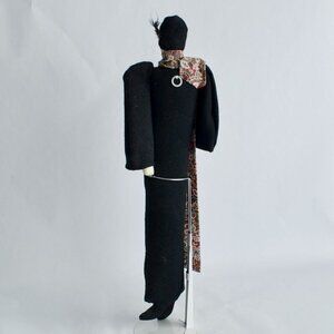 21" tall. Has a hook on the back so it can be hung on a wall. Does not come with doll stand. Good condition.