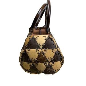 TAGS: Vintage Handmade Tan & Brown Coconut Shell Barrel Hand Bag  Vintage Handmade Coconut Shell Barrel Handbag Tan & Brown Coconut Shell Bag Triangle Pieced Coconut Shell Purse Cream & Dark Brown Coconut Shells Handmade Coconut Shell Handbag Carved top Handle Coconut Shell Bag Unique Natural Tropical Coconut Girl Maximalist Latte Dressing Handbag Festival Outfit Handbag Structured Coconut Shell Bag Handmade Barrel Bag Vintage Natural Material Bag Tropical Summer Bag Unique Handmade Handbag Coconut Shell Handbag Vintage Handmade Tan & Brown Bag Coconut Shell Pieced Cream & Dark Brown Carved Wood Handles Natural Materials Maximalist Summer Vibes Festival Outfit  Unique Design Bag   Barrel Shape purse Handmade bag Craftsmanship structured top handle earth tone
