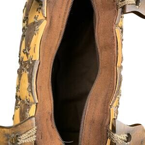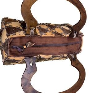 Vintage Handmade Tan & Brown Coconut Shell Barrel Hand Bag