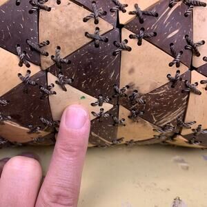 Cream & Dark Brown Triangle Pieced Conut shells Stitched together with brown cord