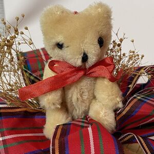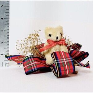 Vintage Handmade Teddy Bear Plush Jointed Tartan Bow Clip-On Christmas Ornament