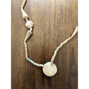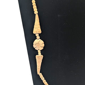 Vintage Handmade Terracotta Clay Bead Floral Necklace Southwest Boho Beachy 28"