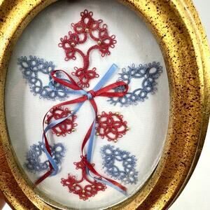 Vintage handmade and professionally framed adorable little ribbon and thread art. So sweetly made by someones grandmother! A unique piece to add to a wall of vintage art.