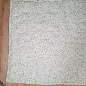 In good condition. Little string tabs shown in the photos. There is a very faint stain shown in the last two photos. There is a sweet personalized note sewn in. The size is approximately 33 inches x 42.5 inches.
