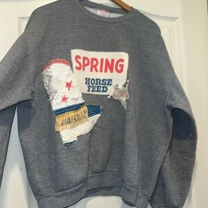 Vintage Handmade Upcycled Patchwork Quilt Western Crewneck Gray Sweatshirt