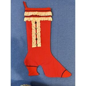 Vintage Handmade Victorian Boot Christmas Stocking, Lace And Buttons