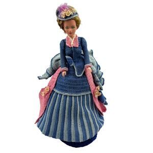 Vintage Handmade Victorian GWTW Style Formal Dress Gown Blue Pink Barbie Crochet