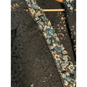 Vintage Handmade Womens Cardigan Medium Black Floral Lace Open Whimsigoth 90s