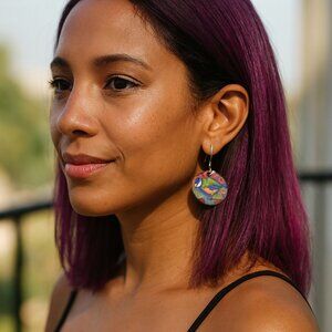These charming vintage earrings feature a vibrant bluebird perched on a branch, surrounded by colorful wildflowers. The intricate design is crafted from natural wood, adding a touch of rustic charm. Perfect for adding a touch of nature-inspired style to any outfit. These lightweight earrings are comfortable to wear all day long.