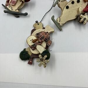 Vintage unique handmade wooden hand painted ice skating / winter sports snowmen hanging from large snowflake hanging wall decor.