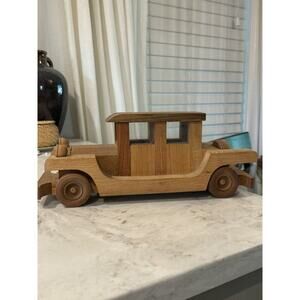 This vintage wooden truck is a classic collectible that will add a touch of charm to any room. Handmade in the United States, this piece is a unique addition to any collection. The truck features intricate details and a personalized touch that makes it special. It's perfect for boys nursery decor, or anyone who loves vintage handcrafted items. This piece is a great addition to any home décor and will surely be a conversation starter.