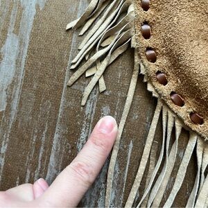 Vintage Handmade Woven Fringe Suede Leather Crossbody Purse Western Rodeo Boho