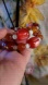 Handmade (by me!) with ALL vintage materials in Y2K style - white tigers eye beads, red/orange glass beads, acrylic/plastic beads, pewter butterfly and red enamel flower charm; sturdy memory wire.
