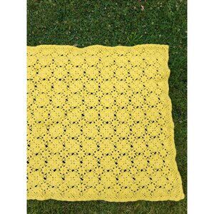 Vintage Handmade Yellow Crochet Blanket Floral Granny Square 35"x60" Clean