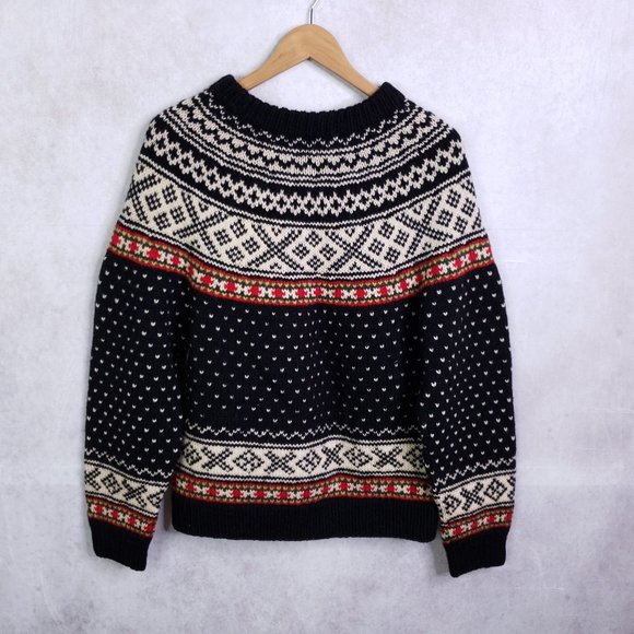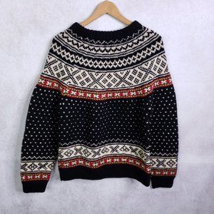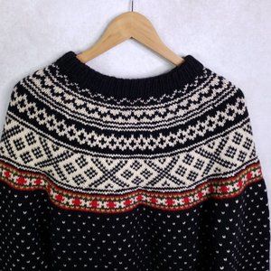 Vintage Handmade in Norway Fair Isle 100% Wool Crewneck Pullover Sweater