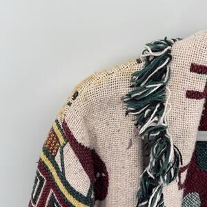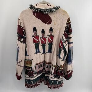 Vintage Handmade toy soldier train Christmas woven fringe long line blanket coat