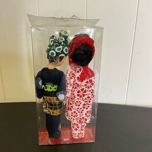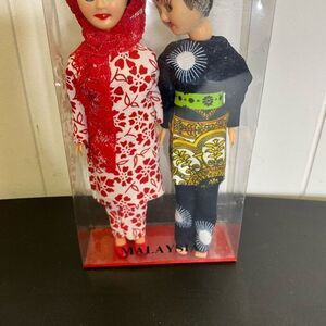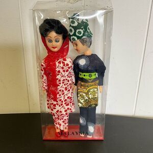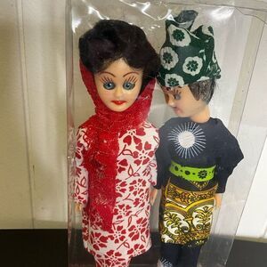 Vintage Handmade Malaysian Set of Woman and Man Figurine Dolls With Stand 7.5"