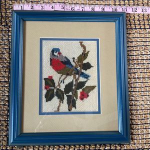 Vintage Handmade Needlepoint Bird on a Branch -Framed