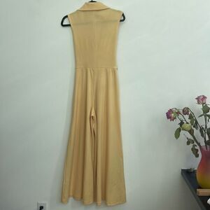 Vintage Handmade Yellow Wide Leg Zip Up Jumpsuit - Small