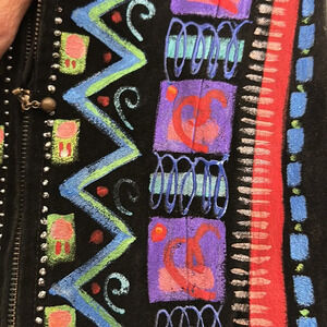 Vintage Leather Handpainted Vest Zips in front vibrant colors and design Sz S
