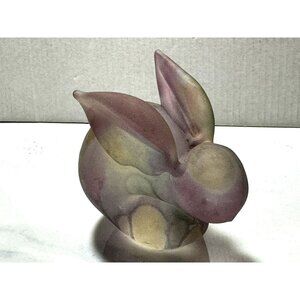 Vintage Handpainted Rueven Glass Sitting Rabbit Bunny Nouveau Art Glass Co USA