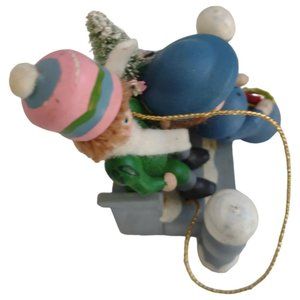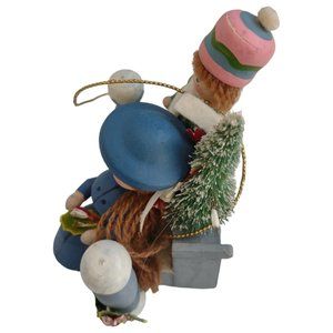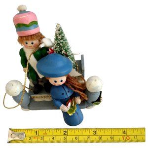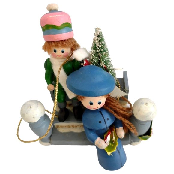 Vintage Handpainted Wooden Christmas Ornament Children Sitting On Steps