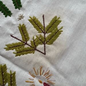 Vintage Handstitched Needlepoint Holiday Tea Towel Candle Tree Branch 33”x16.5”