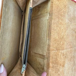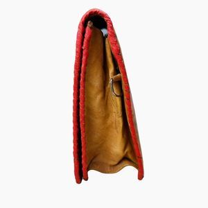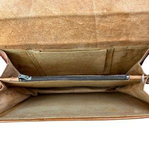 Vintage Hand-tooled Brown Leather Cluth Bag With Tribal Ladies Design