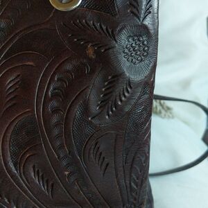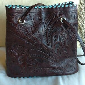 Vintage Hand-tooled Leather Bucket Bag- Love Turquoise?