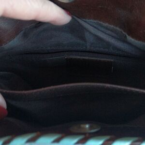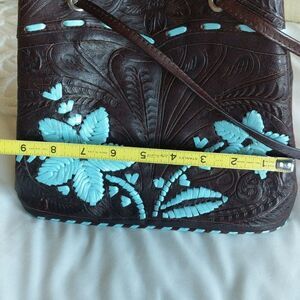 Exquisite turquoise tooled leather motifs design with rich chocolate brown tooled leather