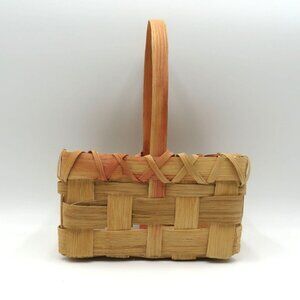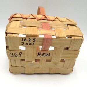 Vintage Handwoven Natural Woven Basket Handle Rustic Decorative Storage Signed