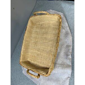 Vintage Handwoven Rattan Storage Basket With Floral Embellishments Handles 11x7