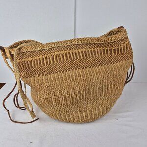 Vintage Handwoven Sisal Tote Market Bag from Kenya. Handwoven African bag. Beautiful earth tones of brown and beige. One long braided woven strap. Durable and versatile. This is quite a large bag. Great for farmers market runs, grocery, weekend getaways, travel or everyday use. Preowned with some light wear- staining inside and outside. Please see pictures for approximate measurements. Festivals, hippie, boho, Bohemian, African, Kenyan, market bag, earthy, beach bag, shopping, satchel, woven Kenyan. tote, sustainable.