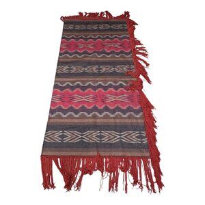 Vintage Handwoven Southwestern Fringed Rug 65" X 32" Buffet Topper Sofa Table