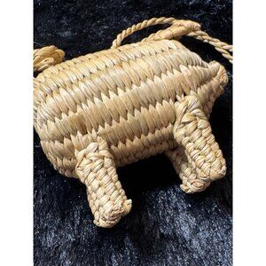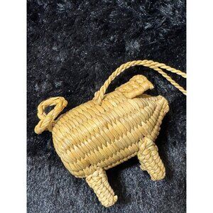 Vintage Handwoven Straw Pig-Shaped Ornament With Braided Loop For Hanging