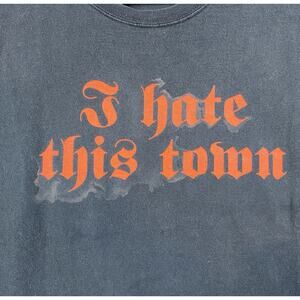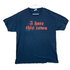 Vintage Hanes Heavyweight Emo Punk T-Shirt I Hate This Town Black Tee Sz L Y2K