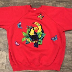 VINTAGE HANES HER WAY PARROT AND BUTTERFLY CREWNECK SWEATSHIRTWOMEN SIZE XL