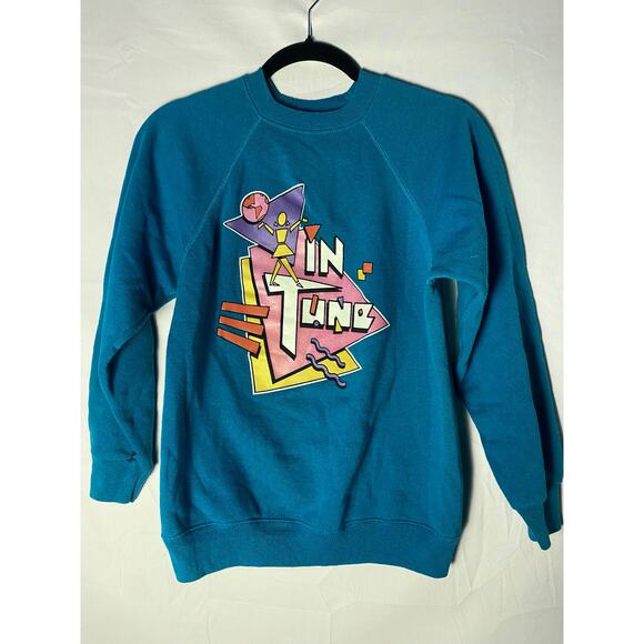 Vintage Hanes "In Tune" Graphic Print Blue Teal Crewneck Sweater Women's Small