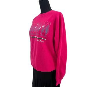 Vintage Hanes Pink Sweatshirt Lake Placid Winter Snow Tree Bird Large