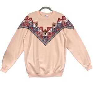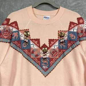 Vintage Hanes Southwestern 90s Embellished Aztec Sweatshirt Womens Size L Pink