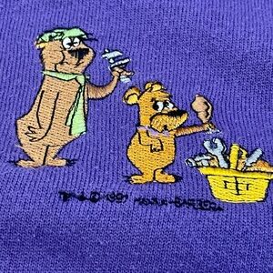 Vintage Hanes Yogi Hanna Barbra Purple Crewneck Sweatshirt Embroidered VTG 1997