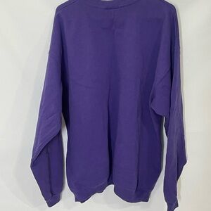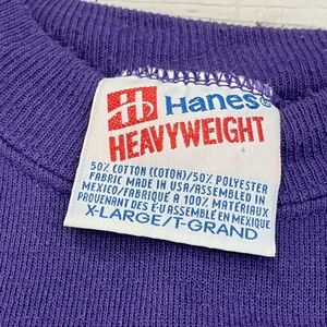 This vintage Hanes crewneck sweatshirt from the mid 90s (1997) showcases a striking purple color, crafted from a soft knit fabric for a relaxed and comfortable fit. The long sleeves and classic round neckline make it a versatile addition to any wardrobe. A subtle embroidered design on the chest adds a touch of elegance to this cozy piece.